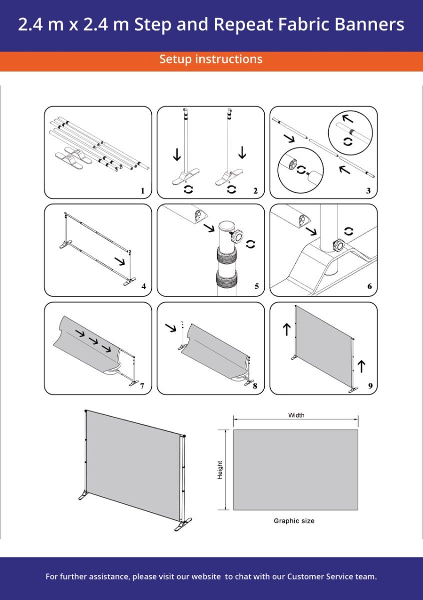 These affordable banners are made from superior polyester fabric, designed to endure. Boasting a graphic weight of 230 GSM, they withstand tearing and stretching. Printed with full-colour 1440 DPI dye-sublimation, the vibrant, sharp, and enduring graphics ensure these step and repeat banners for events stand out from a distance, making them an excellent choice for any occasion. Available stands are crafted from lightweight aluminium, adjustable from widths of 1.4 m to 3.0 m and heights from 1.2 m to 2.4 m.