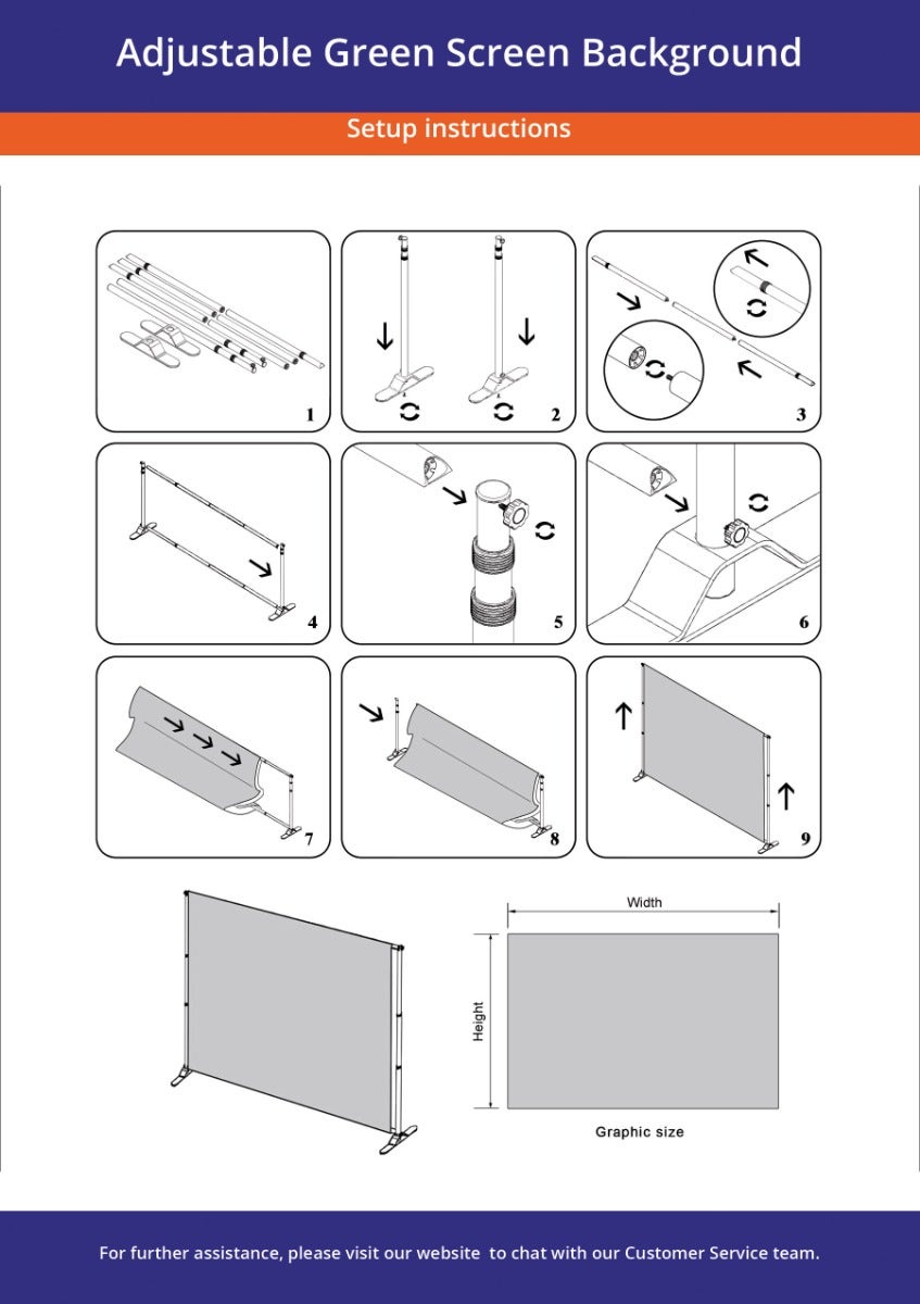 We offer two flexible sizes to suit your needs: a square screen and a wider option, both adjustable in height and width. Choose from single-sided or double-sided prints, with the single-sided option featuring a plain white back. You can purchase the screen with or without the frame, depending on your setup. The lightweight design makes it easy to disassemble and transport, making it ideal for professionals on the go. Additionally, with pole pocket options on all sides, our green screen with stand is simple to assemble. Follow our ten-step guide for a detailed insight on the process of assembly. Additional accessories like carry bags, make transportation a breeze.