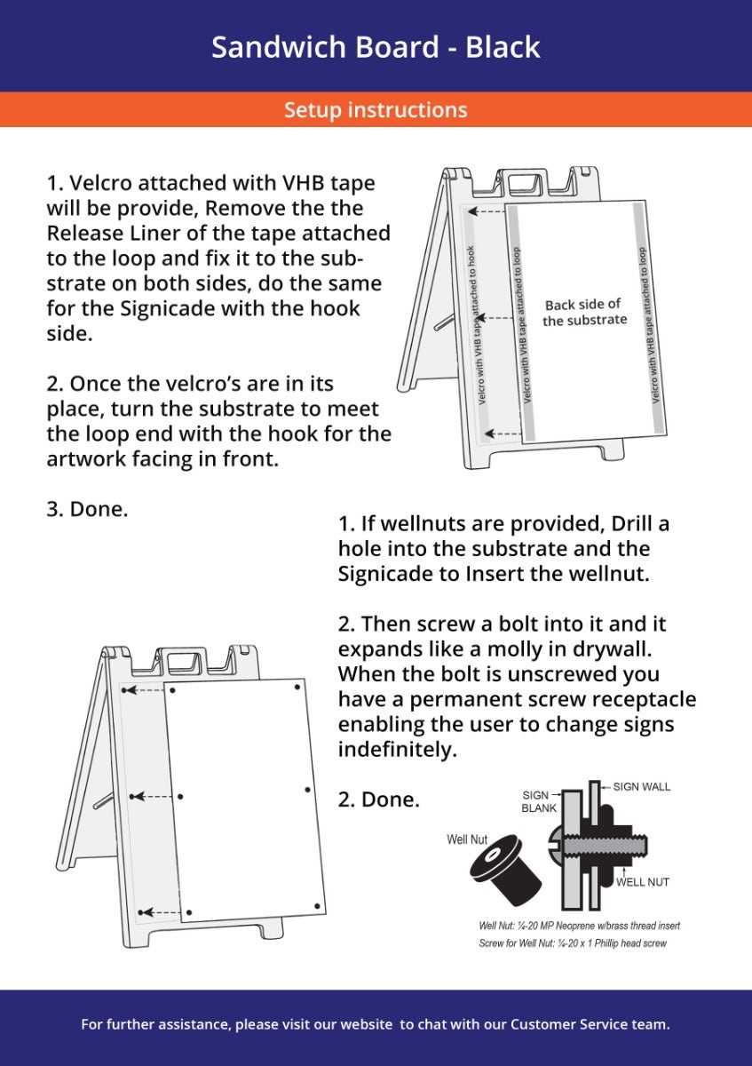 Shape your custom sandwich boards to match your business identity. Standard measurements guarantee clear visibility, while the built-in top handle ensures simple repositioning. Choose your graphics and select between single or double-sided printing, with multiple design paths - create online, submit your artwork, or partner with our design experts. Additional frames provide a polished finish.