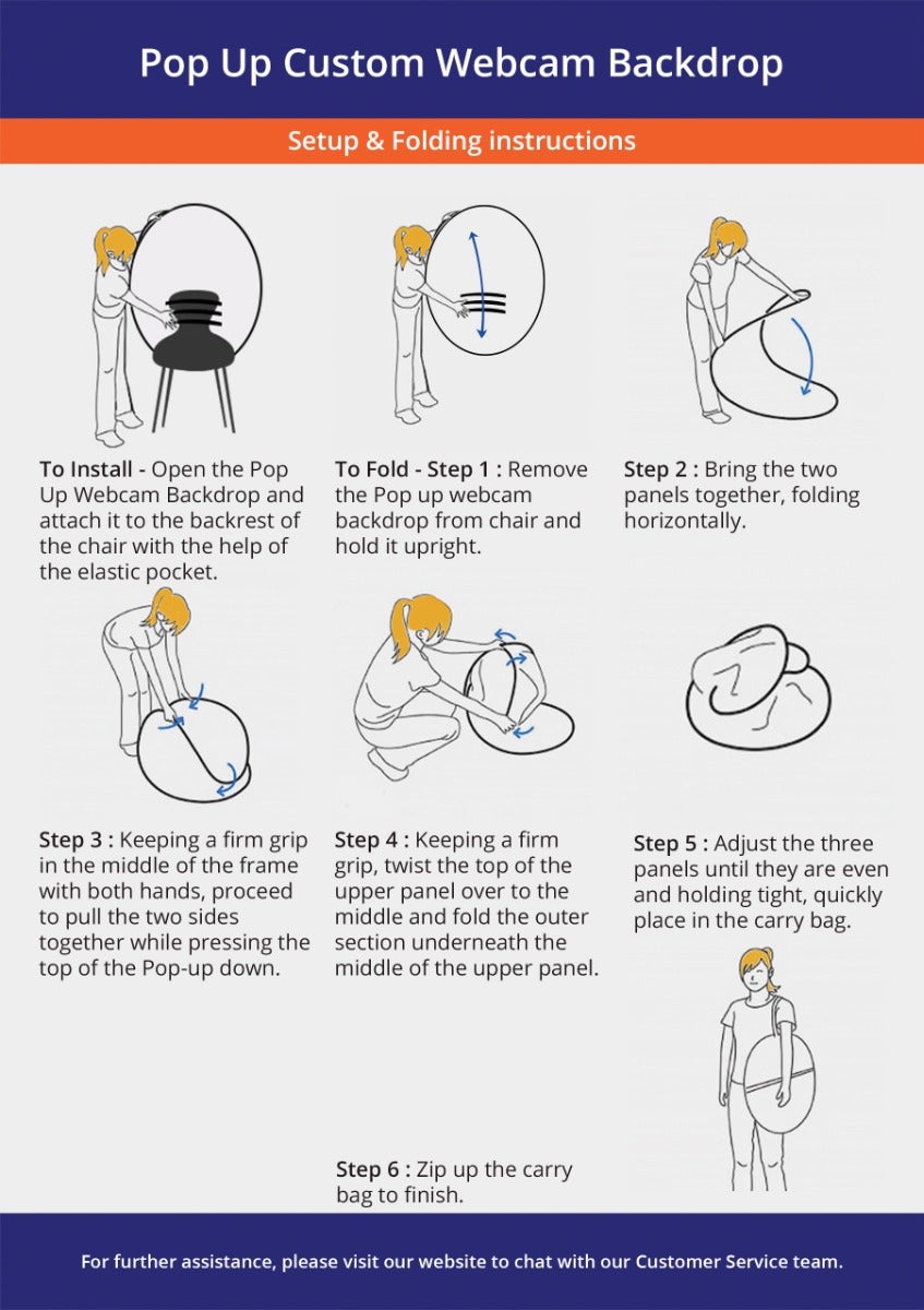 Select from our popular sizes of the foldable backdrop, designed for practicality with a feature that allows it to collapse to one-third its size for easy portability with a carry bag. Customise your background for webcam using our web-based design tools, available templates, or by uploading your original designs. Optionally, employ a designer to meticulously customise it according to your specifications.
