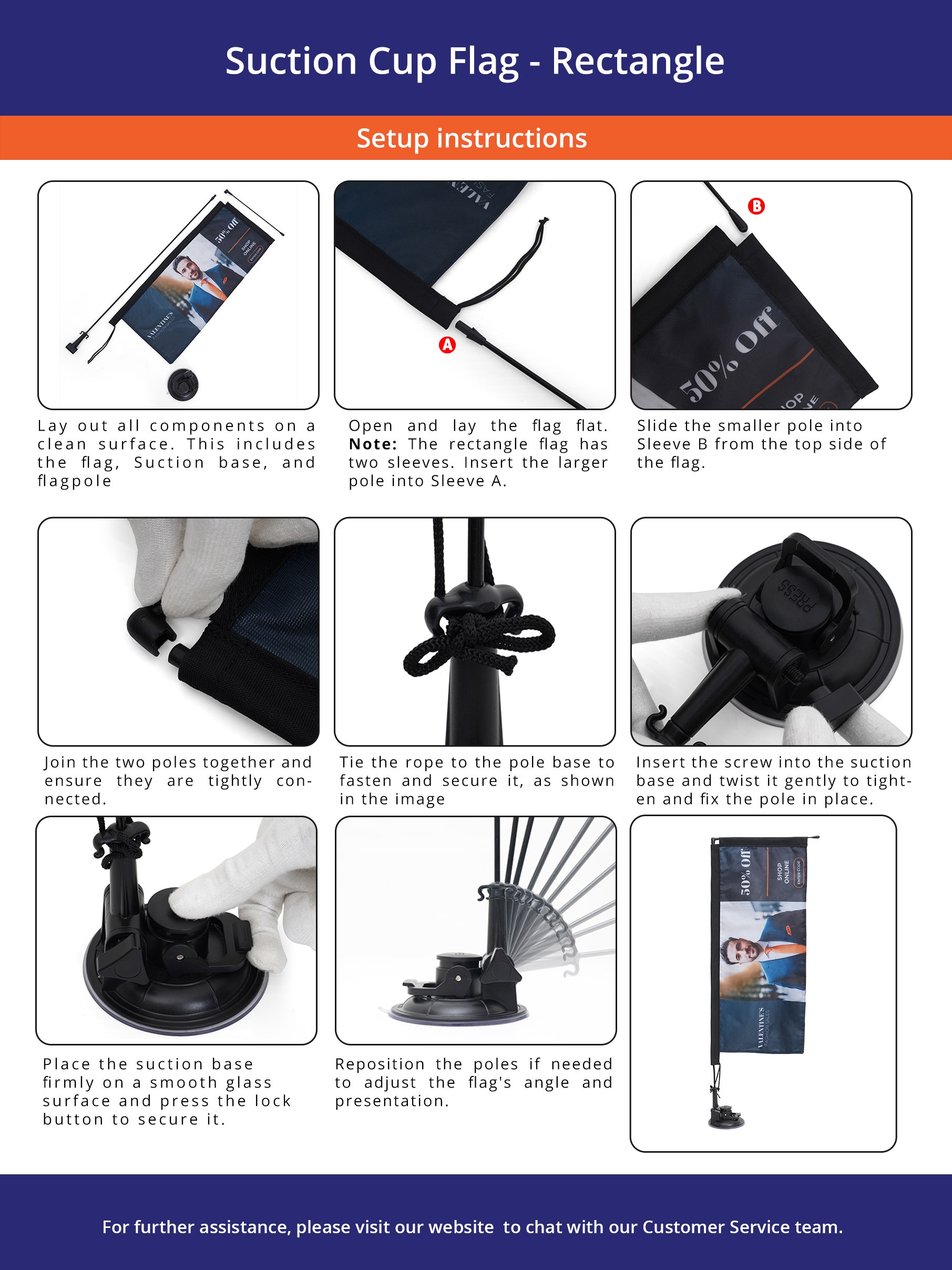 Explore the ultimate promotional tool with our rectangle suction cup flags. These flags are perfect for improving your brand's visibility at corporate events and outdoor functions. These flags guarantee you'll grab attention at every event.